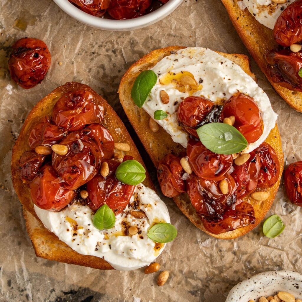 - Dairy-Free: Swap burrata for creamy cashew cheese or almond ricotta — both work beautifully with roasted tomatoes.
