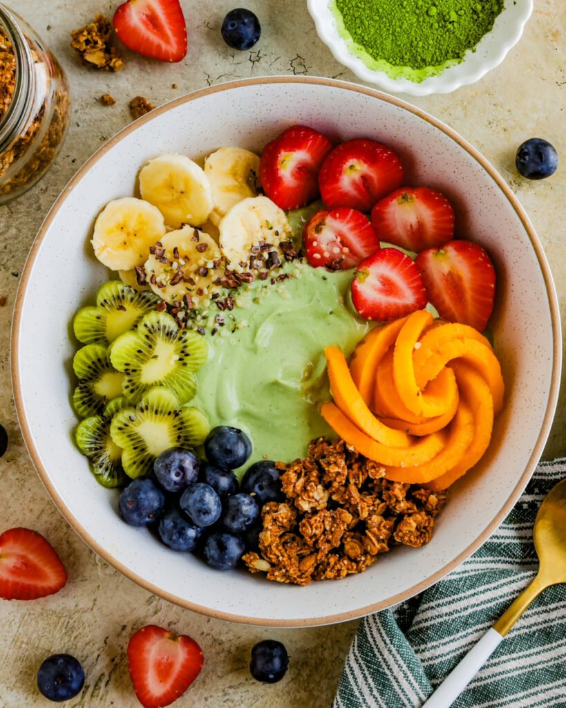 This bowl brings together the smooth, mellow taste of matcha with the cool creaminess of yogurt and the natural sweetness of fruit. It’s energizing but not overwhelming — the caffeine in matcha gives you a gentle lift without the crash of coffee. Plus, it’s fully customizable: you can top it with anything from granola to fresh berries to coconut flakes. It’s basically your morning matcha latte, but more filling and way more fun!